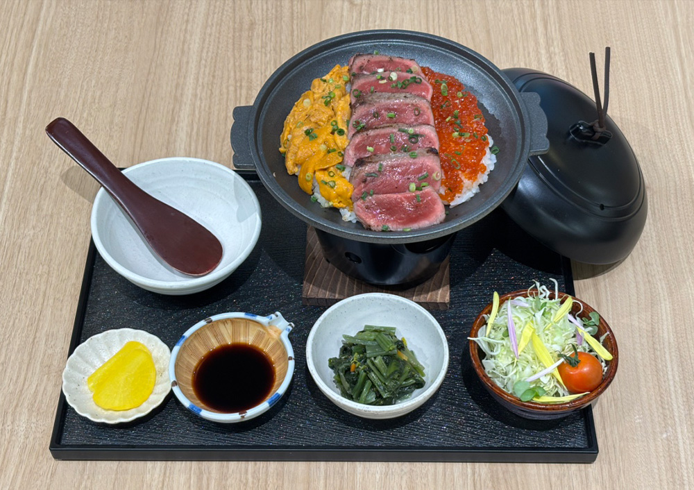 埼玉県産ブランド牛である武州和牛と、海の幸を一度に味わえるメニューです。