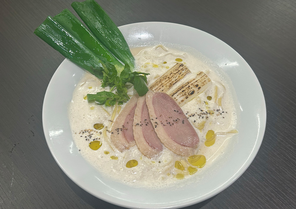 鴨の旨みが凝縮されたスープに、埼玉県産「深谷ねぎ」を合わせた一杯です。