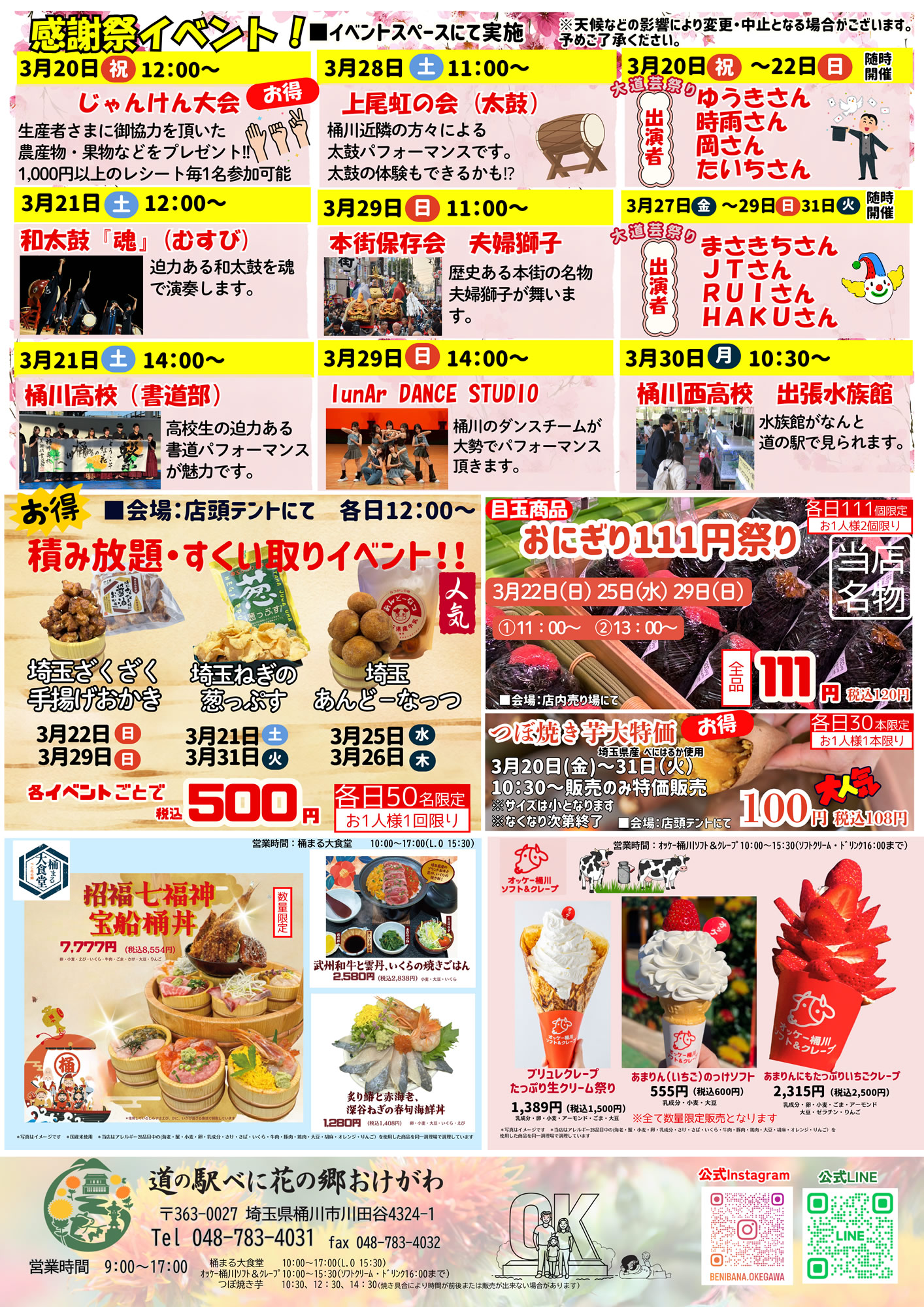 3月20日(金・祝)〜31日は祝・来場者130万人突破★道の駅べに花の郷おけがわ大感謝祭を開催します!